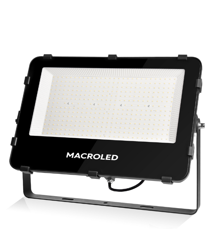 REFLECTOR LED EFL 300W/865 30000LM BK MACROLED, con flujo luminoso de 30000 lúmenes, temperatura de color de 3000k/6500K, óptica simétrica 110°, tensión de operación de 100-240V, índice de reproducción cromática 80, IP65, IK05, 30,000 horas vida útil, 2 años de garantía.